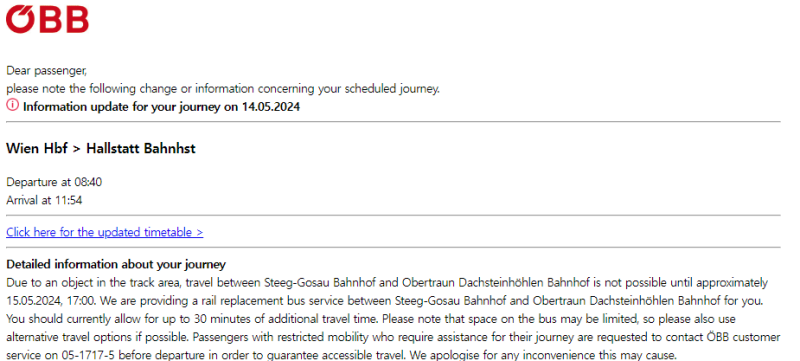 👷 빈 중앙역에서 할슈타트 왕복 기차 공사 안내 👷🏻