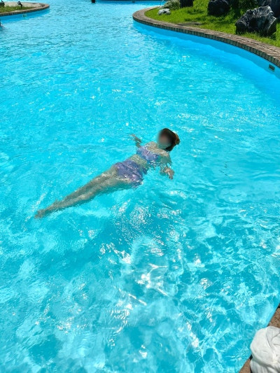 야외 수영장에서 수영 야무지게 1시간 정도 함