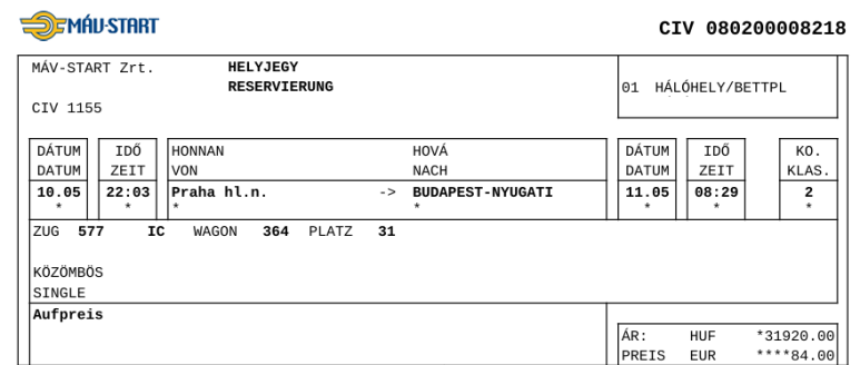 체코에서 헝가리로 가는 방법 중
